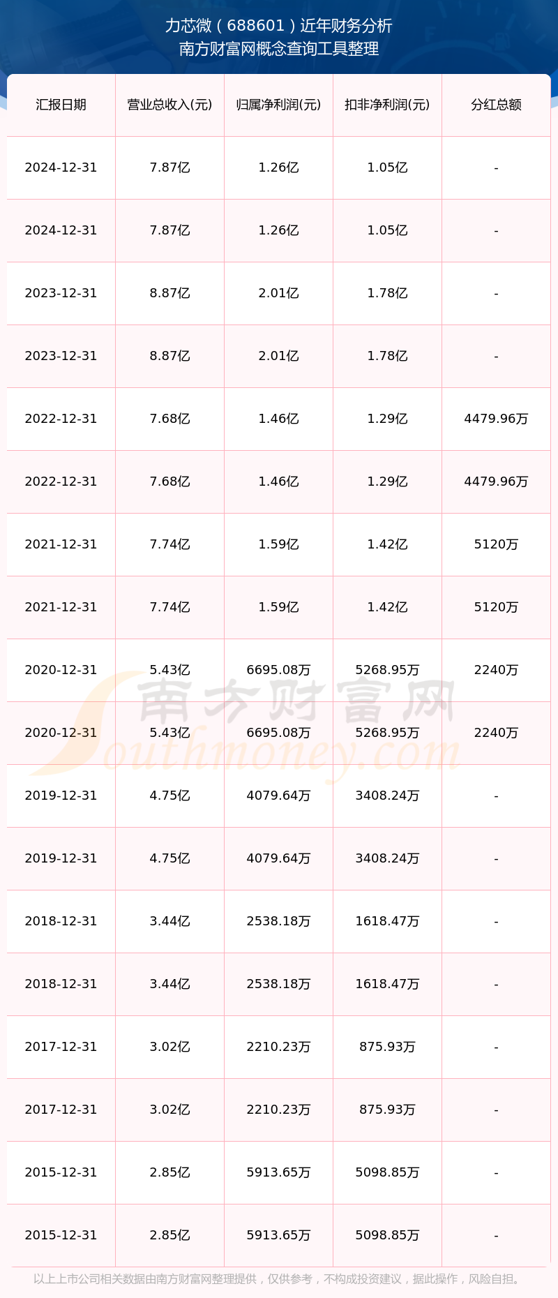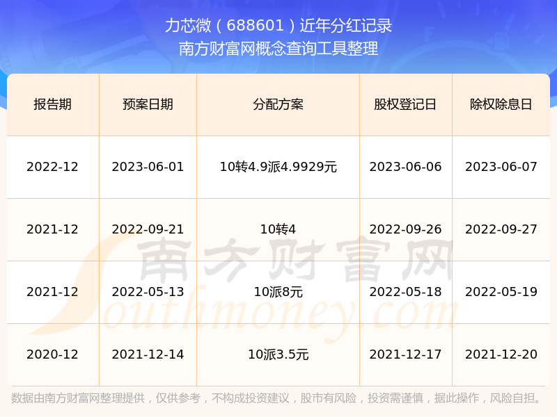 近年力芯微分紅派息情況如下表所示: