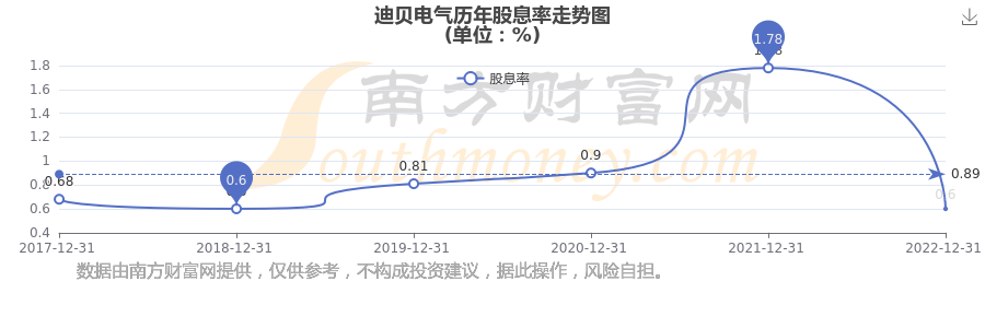 迪貝電氣歷年股息率走勢(shì)如下圖: