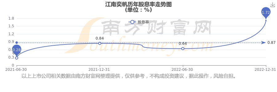 江南奕帆歷年股息率走勢(shì)如下圖: