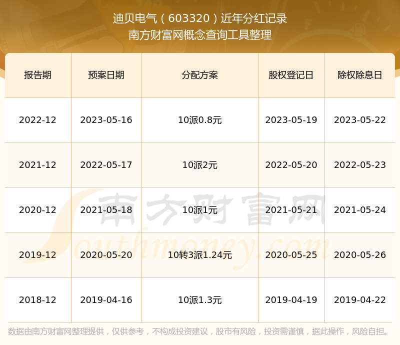 迪貝電氣最新一次公布的分紅方案:10派0.8元。