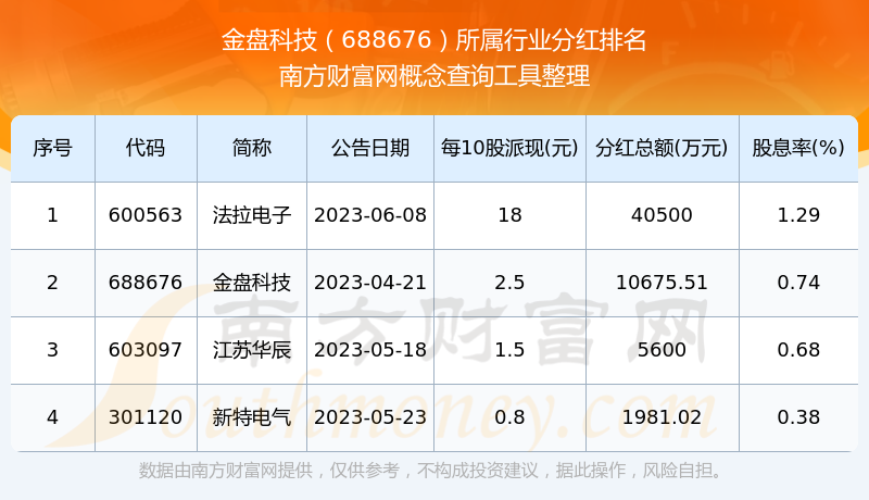 二、金盤科技688676行業(yè)分紅排名