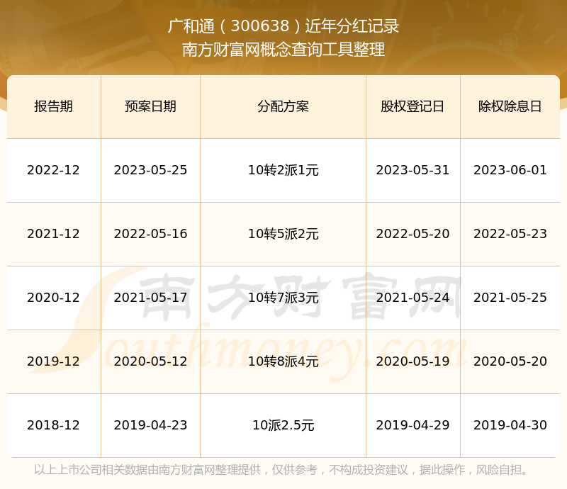 一、廣和通(300638)股票分紅記錄