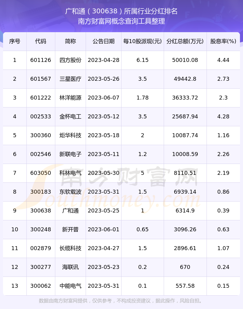 二、廣和通300638行業(yè)分紅排名