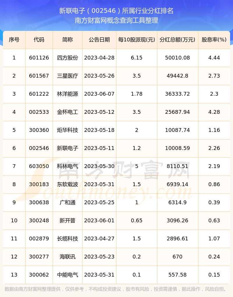 二、新聯(lián)電子002546行業(yè)分紅排名