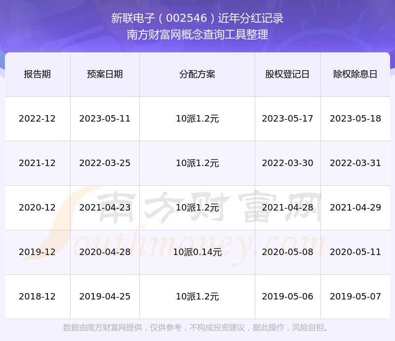 新聯(lián)電子歷年分紅派息情況如下表所示: