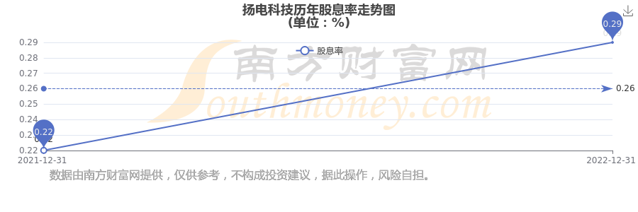 揚電科技最新一次公布的分紅方案為10轉(zhuǎn)4派1元。本次權(quán)益分派股權(quán)登記日為2023年5月23日,除權(quán)除息日為2023年5月24日,派息日為2023年5月24日。