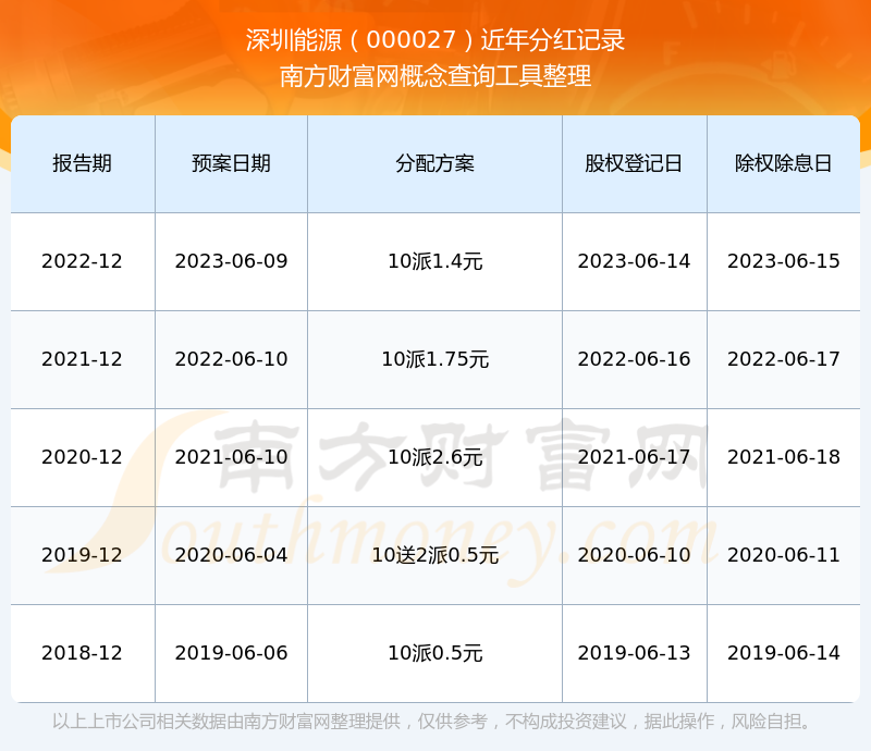 深圳能源最新一次公布的分紅方案:10派1.4元。