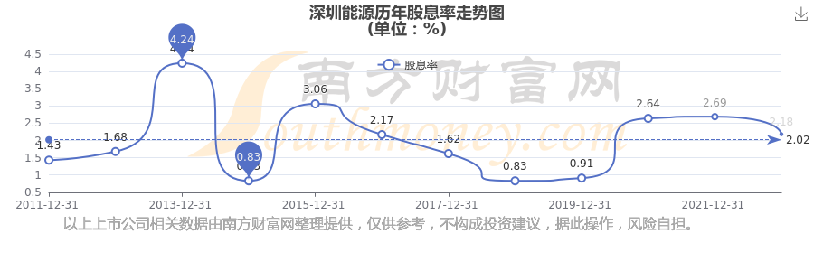 近年深圳能源年度股息率走勢(shì)如下圖: