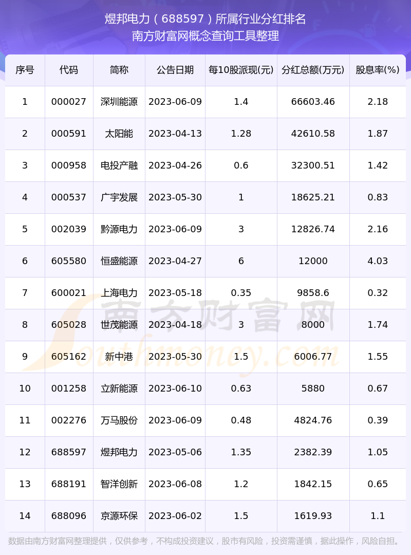二、煜邦電力688597行業(yè)分紅排名