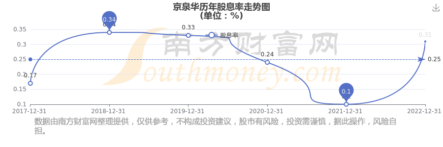京泉華最新一次公布的分紅方案為10轉(zhuǎn)4派1元。本次權(quán)益分派股權(quán)登記日為2023年5月25日,除權(quán)除息日為2023年5月26日,派息日為2023年5月26日。