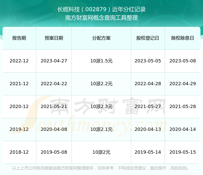 長纜科技最新一次公布的分紅方案為10派1.5元。本次權(quán)益分派股權(quán)登記日為2023年5月5日,除權(quán)除息日為2023年5月8日,派息日為2023年5月8日。