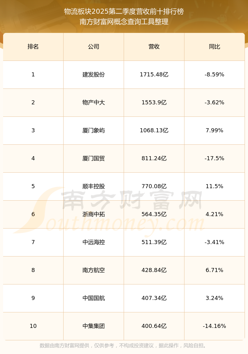 按照南方財富網(wǎng)概念查詢工具統(tǒng)計,該股所屬板塊為物流板塊,該板塊共有104只股票,長江投資2025第二季度營收在該板塊中排名為第104名,該板塊2025第二季度營收排名前十的股票如下表: