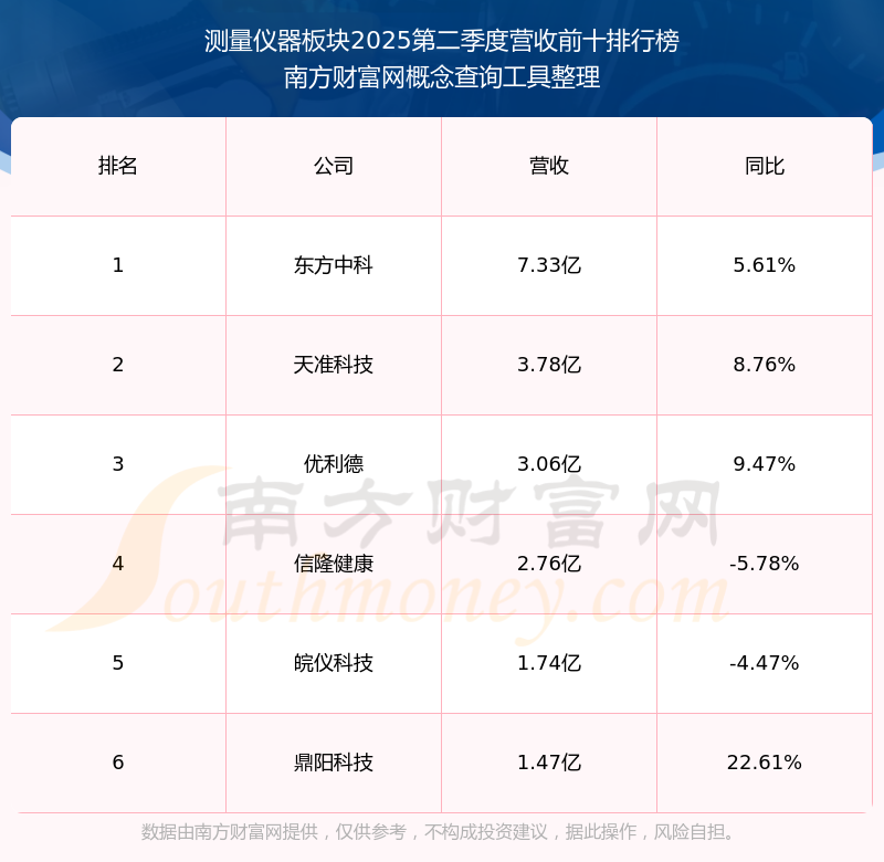 按照南方財(cái)富網(wǎng)概念查詢工具統(tǒng)計(jì),該股所屬板塊為測量儀器板塊,該板塊共有6只股票,優(yōu)利德2025第二季度營收在該板塊中排名為第3名,該板塊2025第二季度營收排名前十的股票如下表: