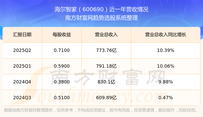 海爾智家2025年第二季度顯示,公司主營收入773.76億元,同比10.39%;歸母凈利潤65.46億元,同比16.02%;扣非凈利潤63.38億元,同比14.81%;