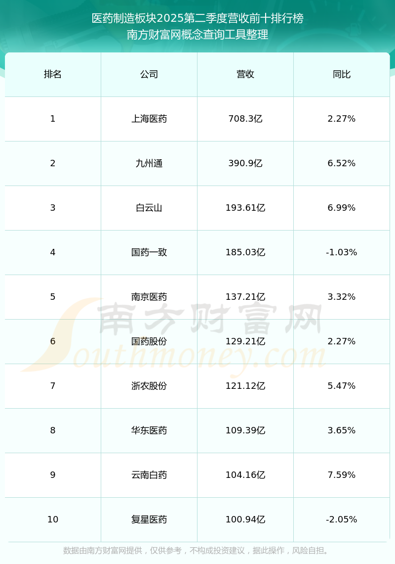 按照南方財(cái)富網(wǎng)概念查詢工具統(tǒng)計(jì),該股所屬板塊為醫(yī)藥制造板塊,該板塊共有278只股票,悅康藥業(yè)2025第二季度營收在該板塊中排名為第114名,該板塊2025第二季度營收排名前十的股票如下表:
