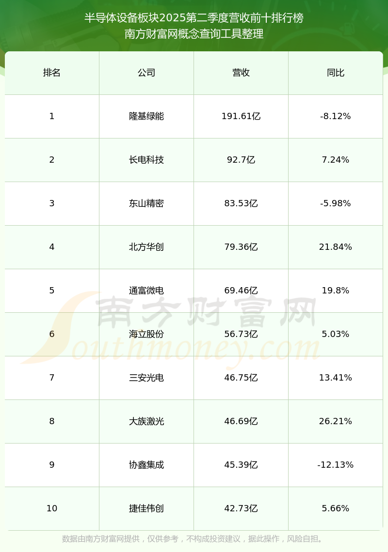 按照南方財(cái)富網(wǎng)概念查詢工具統(tǒng)計(jì),該股所屬板塊為半導(dǎo)體設(shè)備板塊,該板塊共有168只股票,金海通2025第二季度營收在該板塊中排名為第130名,該板塊2025第二季度營收排名前十的股票如下表: