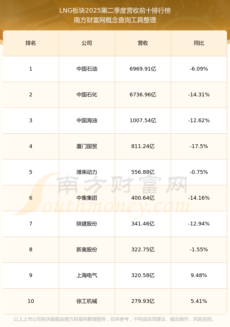 按照南方財富網(wǎng)概念查詢工具統(tǒng)計,該股所屬板塊為LNG板塊,該板塊共有116只股票,恒通股份2025第二季度營收在該板塊中排名為第94名,該板塊2025第二季度營收排名前十的股票如下表: