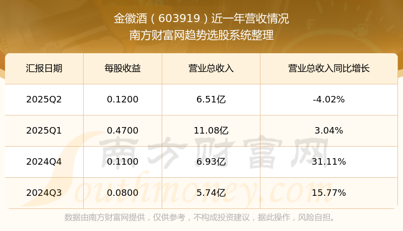 2025年第二季度,金徽酒營收同比-4.02%,凈利潤同比-12.78%。