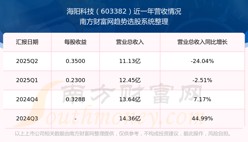 一、海陽科技(603382)股票營收情況