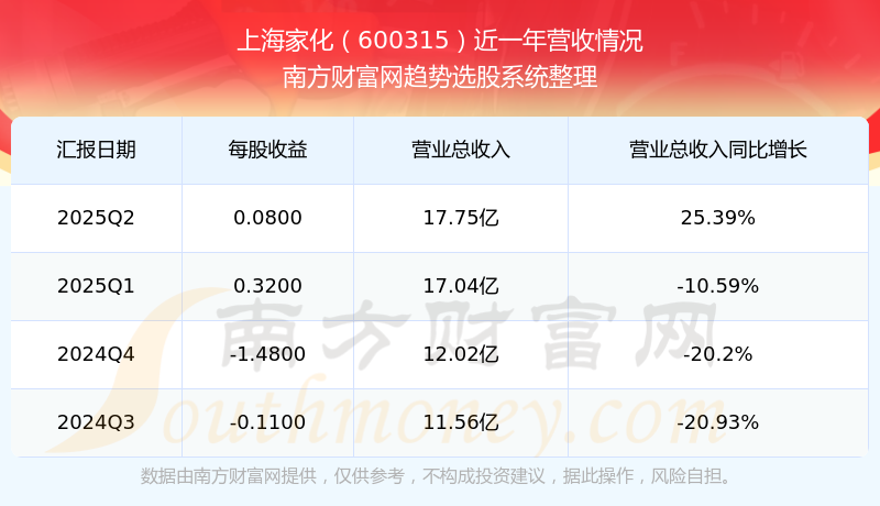 上海家化發(fā)布2025年第二季度財報。實現總營收17.75億元,同比增長25.39%;扣非凈利潤同比增長150.06%至2913.33萬元。