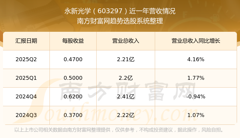 一、永新光學(xué)(603297)股票營(yíng)收情況