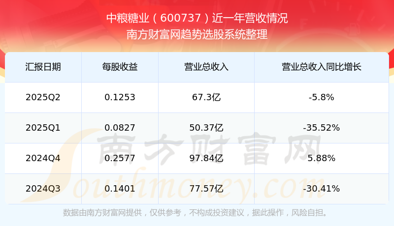 在2025年第二季度,中糧糖業(yè)的業(yè)績表現(xiàn),主營業(yè)務收入達到67.3億元,實現(xiàn)了-5.8%的同比增長率。同時,公司歸母凈利潤錄得2.68億元,同比增長-36.54%。