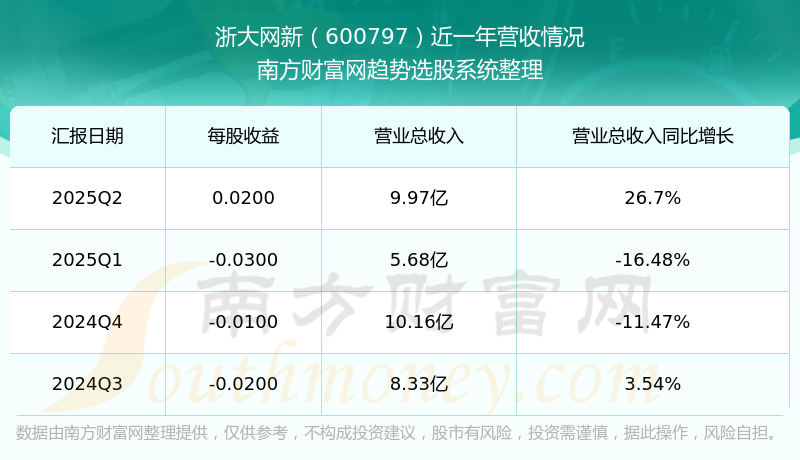 浙大網(wǎng)新發(fā)布2025年第二季度財報。實現(xiàn)總營收9.97億元,同比增長26.7%;扣非凈利潤同比增長56.89%至-927.74萬元。