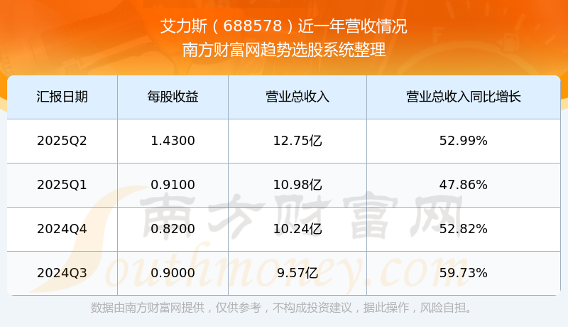 A股上市公司艾力斯(代碼:688578)發(fā)布2025年第二季度財(cái)報(bào),公司2025年第二季度歸屬于上市公司股東的凈利潤(rùn)為6.41億元,凈利潤(rùn)同比增長(zhǎng)83.02%,環(huán)比增長(zhǎng)56.09%。
