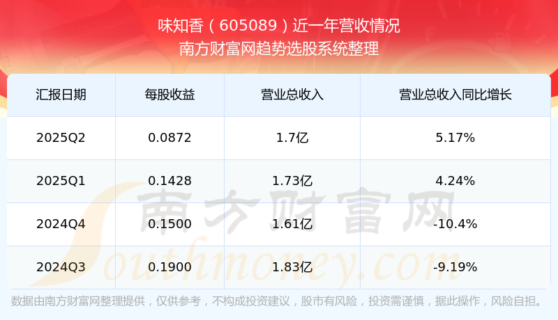 按照南方財(cái)富網(wǎng)概念查詢工具統(tǒng)計(jì),該股所屬板塊為牛肉板塊,該板塊共有11只股票,味知香2025第二季度營收在該板塊中排名為第11名,該板塊2025第二季度營收排名前十的股票如下表: