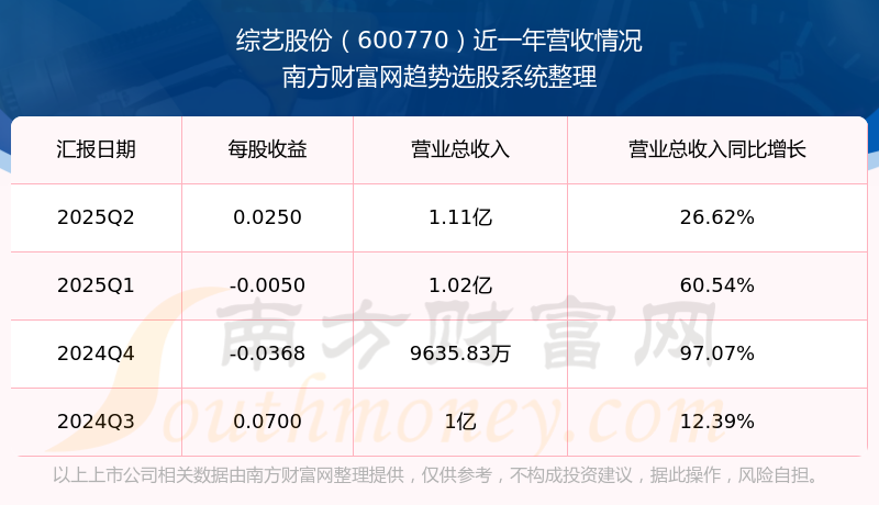 按照南方財(cái)富網(wǎng)概念查詢工具統(tǒng)計(jì),該股所屬板塊為新能源板塊,該板塊共有879只股票,綜藝股份2025第二季度營收在該板塊中排名為第835名,該板塊2025第二季度營收排名前十的股票如下表: