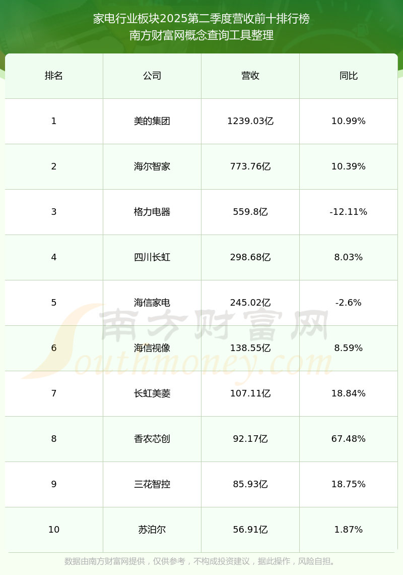 按照南方財(cái)富網(wǎng)概念查詢工具統(tǒng)計(jì),該股所屬板塊為家電行業(yè)板塊,該板塊共有64只股票,澳柯瑪2025第二季度營(yíng)收在該板塊中排名為第21名,該板塊2025第二季度營(yíng)收排名前十的股票如下表: