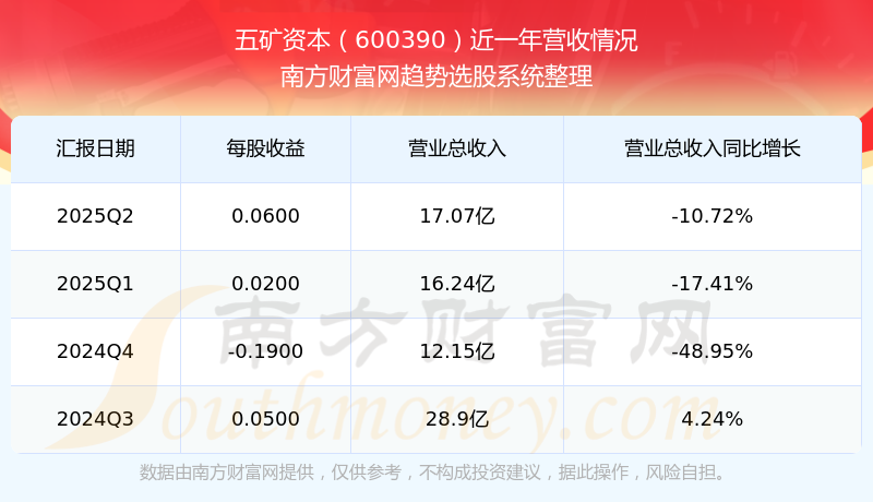 A股上市公司五礦資本(代碼:600390)發(fā)布2025年第二季度財(cái)報(bào),公司2025年第二季度歸屬于上市公司股東的凈利潤(rùn)為3.33億元,凈利潤(rùn)同比增長(zhǎng)-23.98%,環(huán)比增長(zhǎng)73.52%。