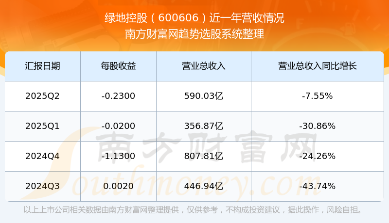 綠地控股(600606)披露2025年第二季度報告,報告期實現(xiàn)營收590.03億元,同比-7.55%;歸母凈利潤-32.59億元,同比-2653.7%;扣非凈利潤-29.4億元,同比-2680.05%。
