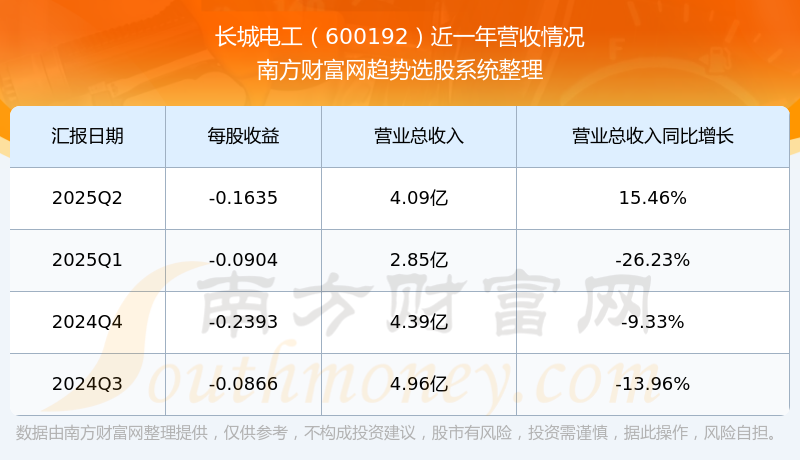 長城電工股票近一年營收情況如下表: