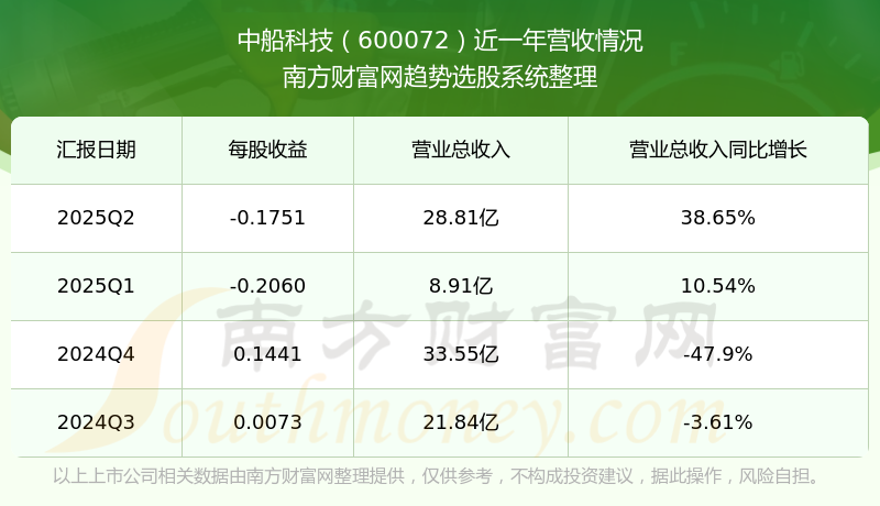 2025年第二季度,中船科技營收同比38.65%,凈利潤同比-1747.04%。