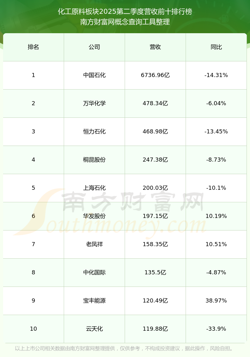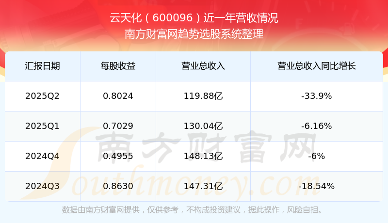 按照南方財富網概念查詢工具統(tǒng)計,該股所屬板塊為化工原料板塊,該板塊共有124只股票,云天化2025第二季度營收在該板塊中排名為第10名,該板塊2025第二季度營收排名前十的股票如下表: