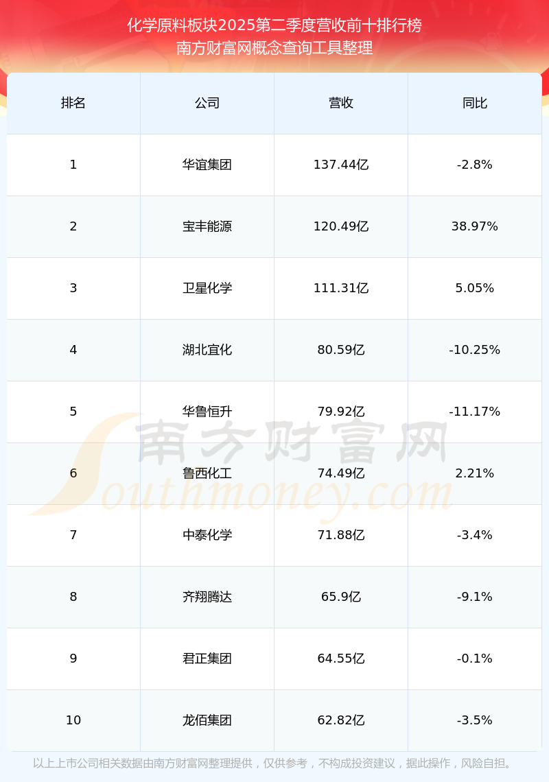 按照南方財富網(wǎng)概念查詢工具統(tǒng)計,該股所屬板塊為化學原料板塊,該板塊共有105只股票,鼎龍科技2025第二季度營收在該板塊中排名為第91名,該板塊2025第二季度營收排名前十的股票如下表: