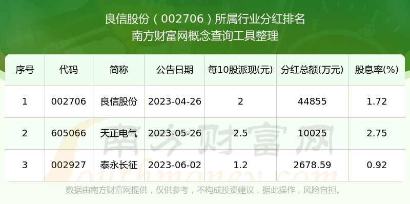 按照南方財(cái)富網(wǎng)趨勢選股系統(tǒng)統(tǒng)計(jì),良信股份所屬行業(yè)為配電電器行業(yè),配電電器行業(yè)分紅排名情況如下表: