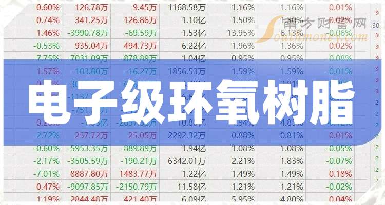 電子級環(huán)氧樹脂上市公司龍頭股有哪些?據(jù)南方財富網(wǎng)概念查詢工具數(shù)據(jù)顯示,電子級環(huán)氧樹脂上市公司龍頭股有: