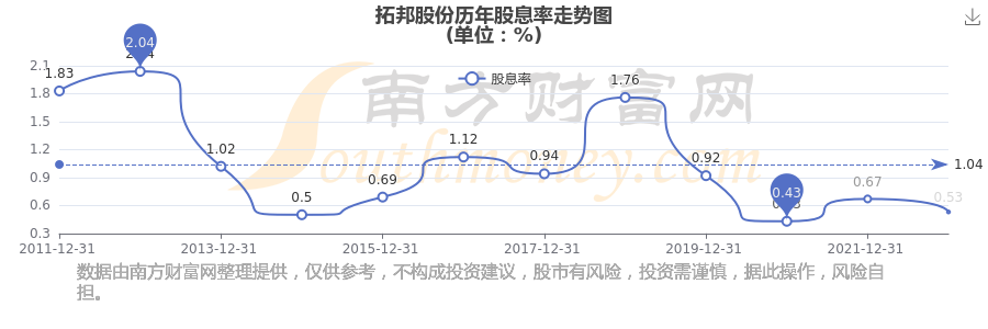 近年拓邦股份年度股息率走勢(shì)如下圖: