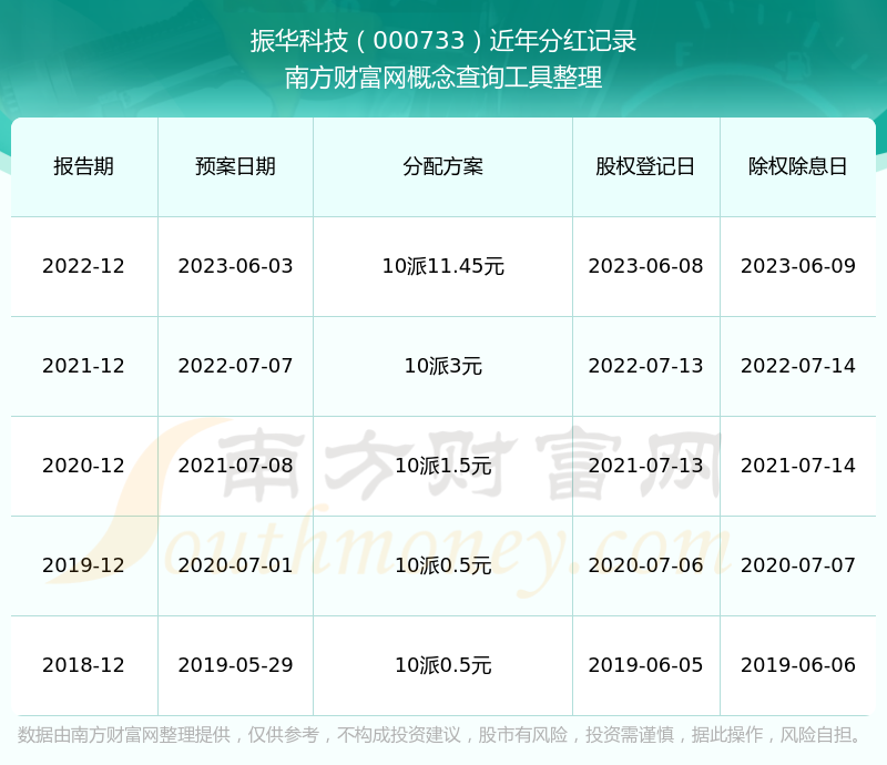 近年振華科技分紅情況如下表所示: