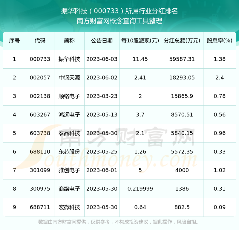二、振華科技000733行業(yè)分紅排名