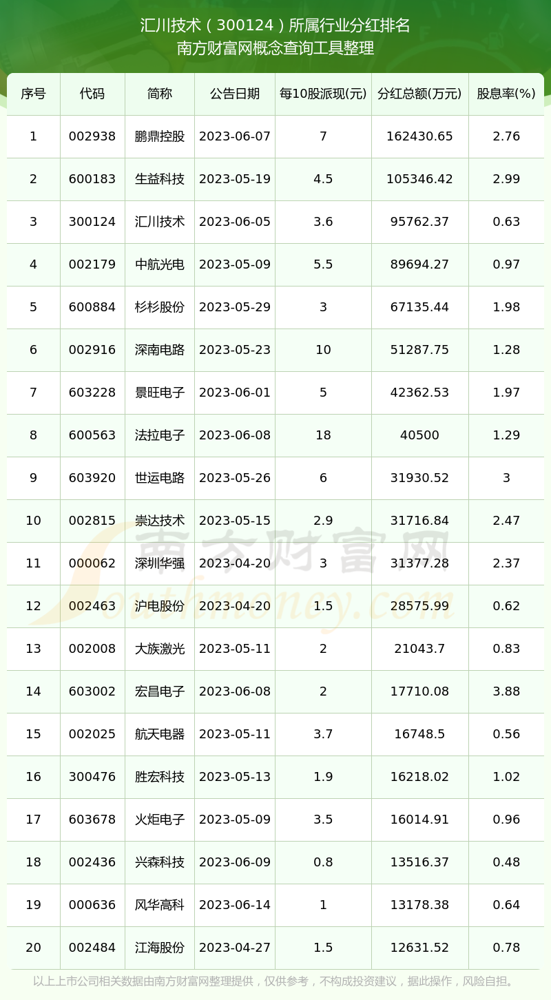 二、匯川技術(shù)300124行業(yè)分紅排名