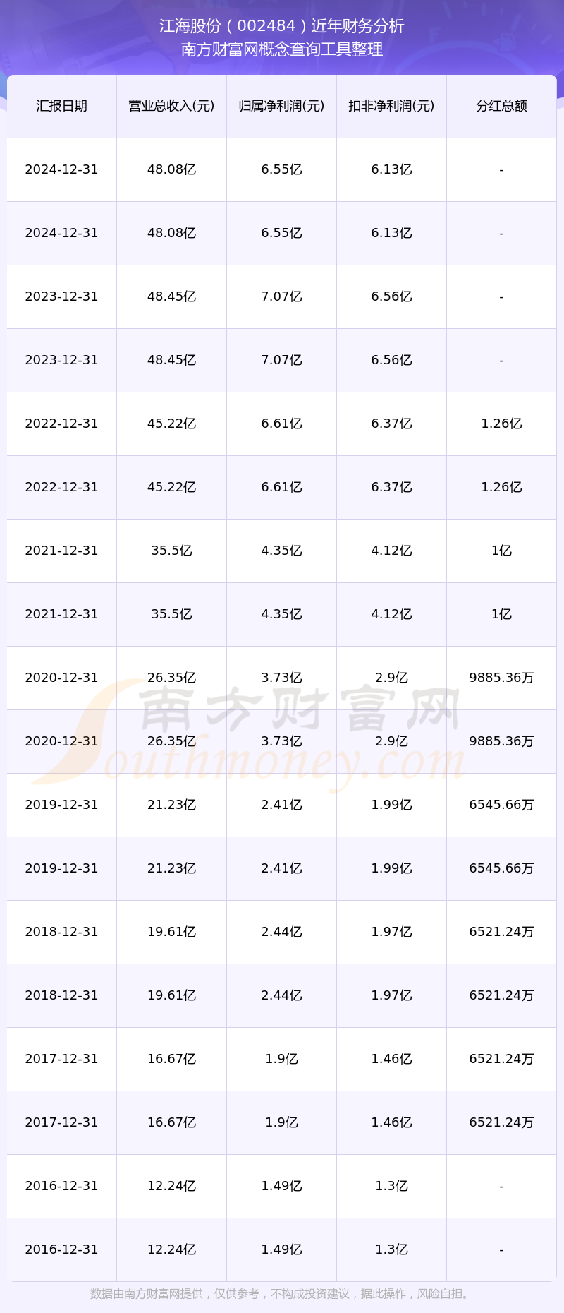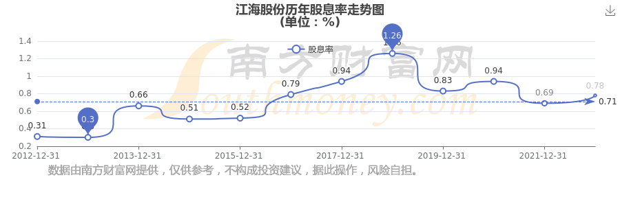 江海股份最新一次公布的分紅方案:10派1.5元。