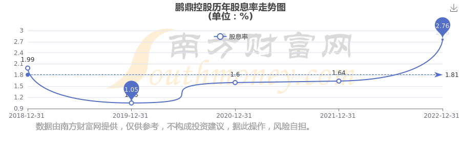 近年鵬鼎控股年度股息率走勢(shì)如下圖: