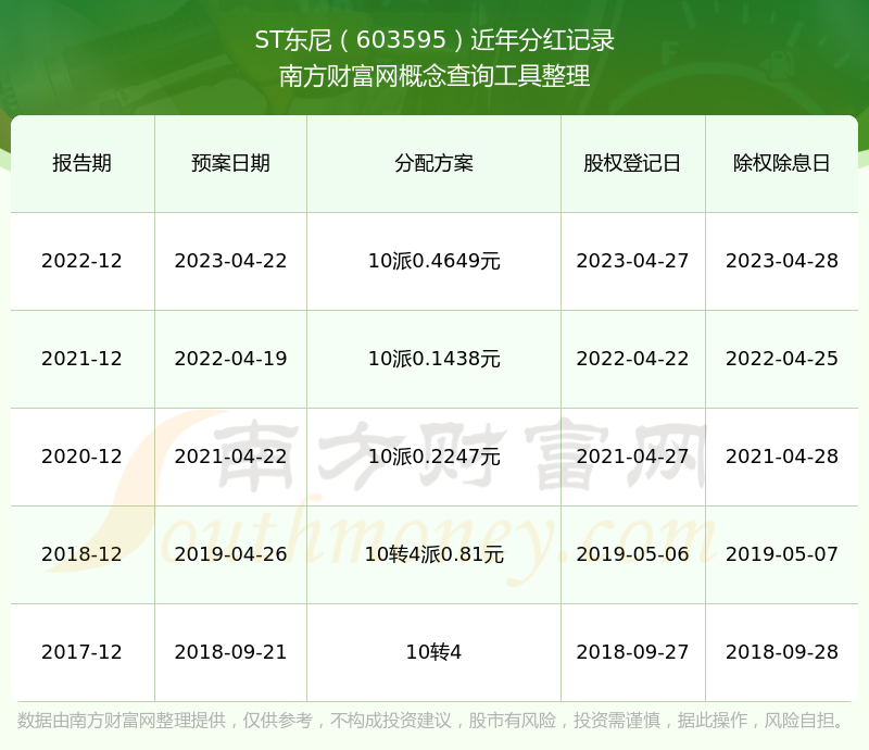 ST東尼最新一次公布的分紅方案:10派0.4649元。