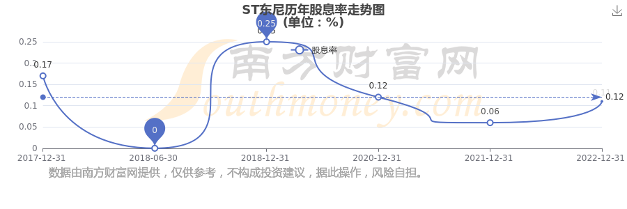 近年ST東尼年度股息率走勢(shì)如下圖: