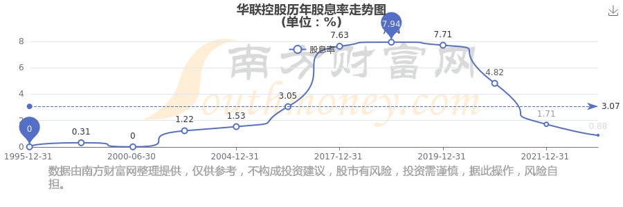 近年華聯(lián)控股年度股息率走勢如下圖: