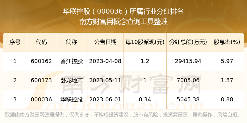 二、華聯(lián)控股000036行業(yè)分紅排名