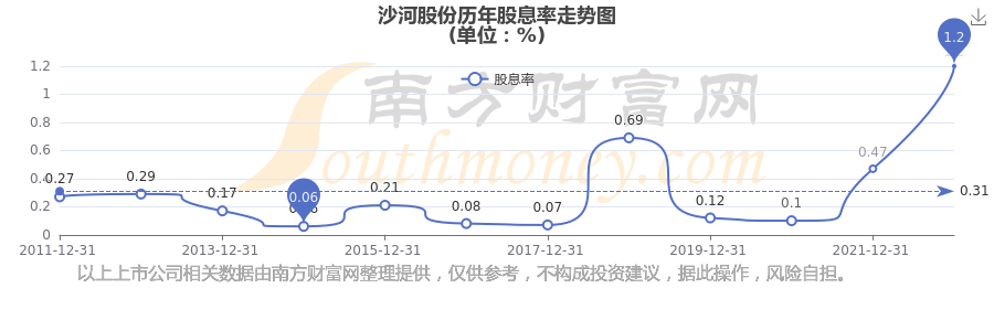 近年沙河股份年度股息率走勢如下圖: